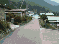 雨畑の集落を進む