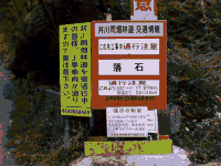 これでもか! と言わんばかりにある「落石注意」の標識.