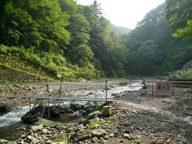 途中,通行止めで対岸に迂回しているところがありました