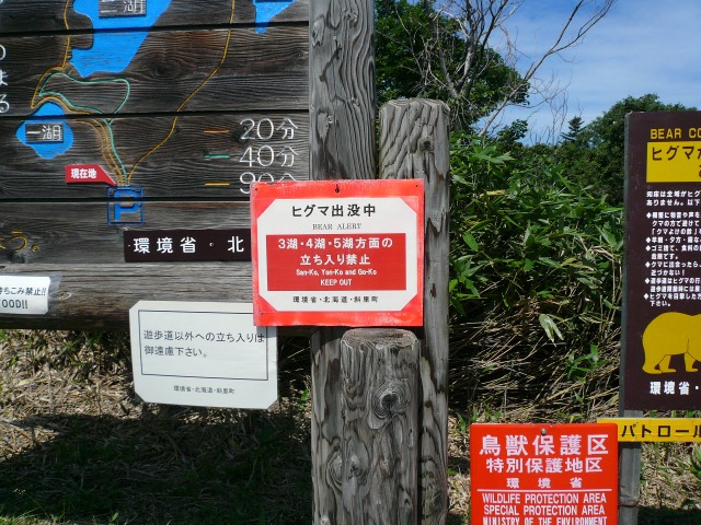 ここから徒歩で知床五湖巡りをしますが,三湖〜五湖はヒグマが発見されたとのことで立ち入り禁止でした.