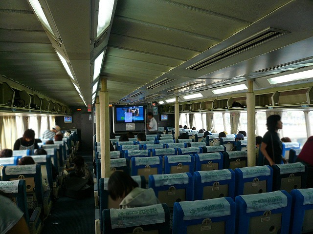 高速艇といえども,2時間近い長旅.(羽田〜鹿児島の飛行機よりも少し長い)