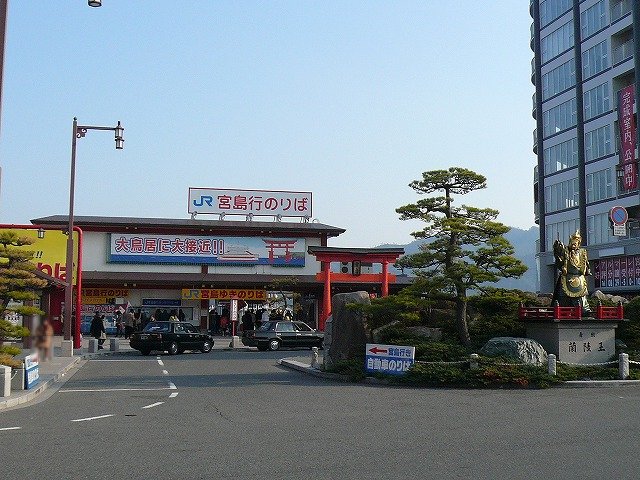 宮島へはJR(連絡船)と松大汽船がありますが、JRのほうはゆき(宮島に行くほう)のときに大鳥居の近くに寄ります
