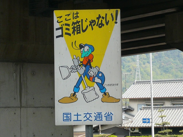 ありがちな看板ですが,小さく書いてある「こっちだヨウ平」という名前が気になる…