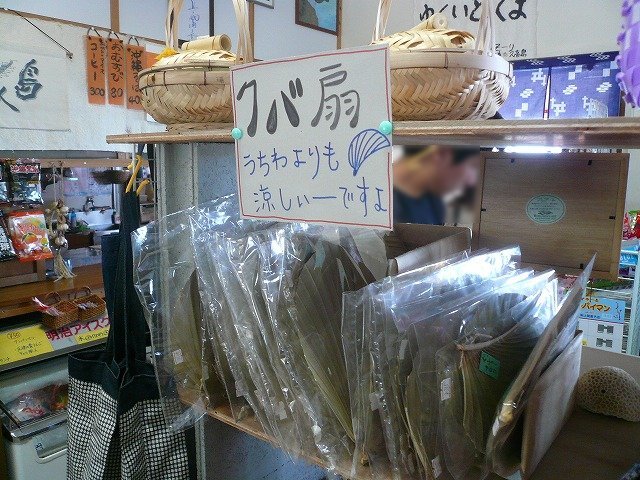 安座真港に戻り,おみやげ屋さんにあった「クバ扇」でしのぐことにしました(^^;