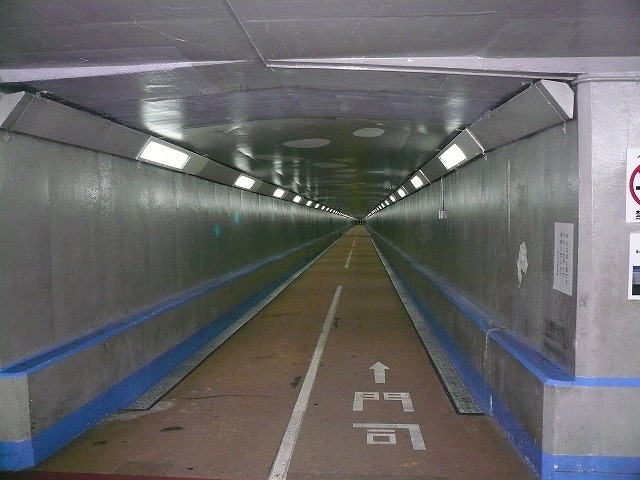 人も通れる(ただし車道と人道は別々)ということで関門トンネル経由で行くことにしました。