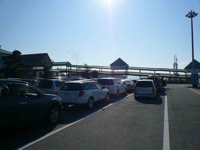 乗船を待つ車列